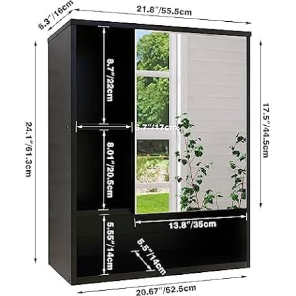 Smibuy Vonios spintelė su veidrodžiu Sieninė bambuko laikymo organizatorė virš tualeto erdvę taupanti medicinos spintelė su 2 durimis ir reguliuojamomis lentynomis (juoda)