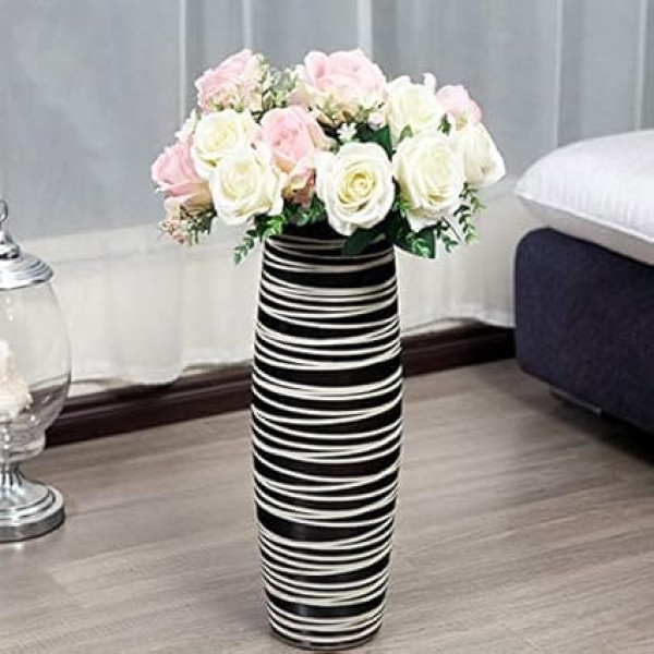 rankų darbo dekoratyvinė vaza, didelė keraminė vaza gėlėms, 50 cm aukščio, juoda ir balta virvelė