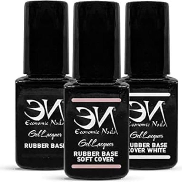 "Economic Nails" 3 x 12 ml skaidrus minkštas pieno spalvos skaidrus rožinis pieno spalvos baltas guminis pagrindas