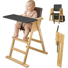 "VILHA Premium" sulankstoma laiptų kėdutė, medinė kūdikių kėdutė, kėdutė nuo 6 mėnesių, praktiška kūdikių laiptų kėdutė su 3 taškų diržais, erdvę taupanti vaikiška kėdutė, mediena 103 (natūrali)