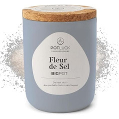 "Potluck Fleur de Sel" rankų darbo jūros druska keramikiniame indelyje 560 g Veganiška, be glitimo ir su natūraliais ingredientais