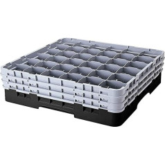 "Cambro 36S638 Camracks" polipropileno stovas 7,3 cm skersmens rankenai ir bokalams, juodas, 1/1 dydžio, 36 skyriai, 17,4 cm aukščio, 3 vnt. pakuotė